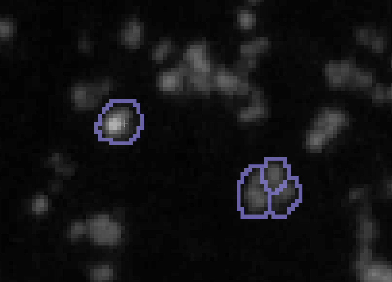 - Try and label puncta of different sizes and brightness and segment out the ones in clusters. You only need to provide several training examples before you saturate the RFC, i.e., you don’t need to annotate the entire image.