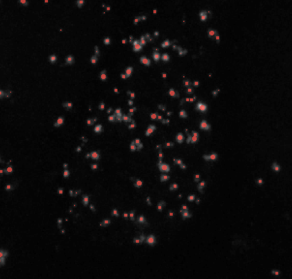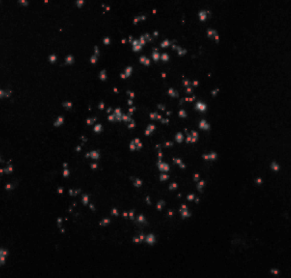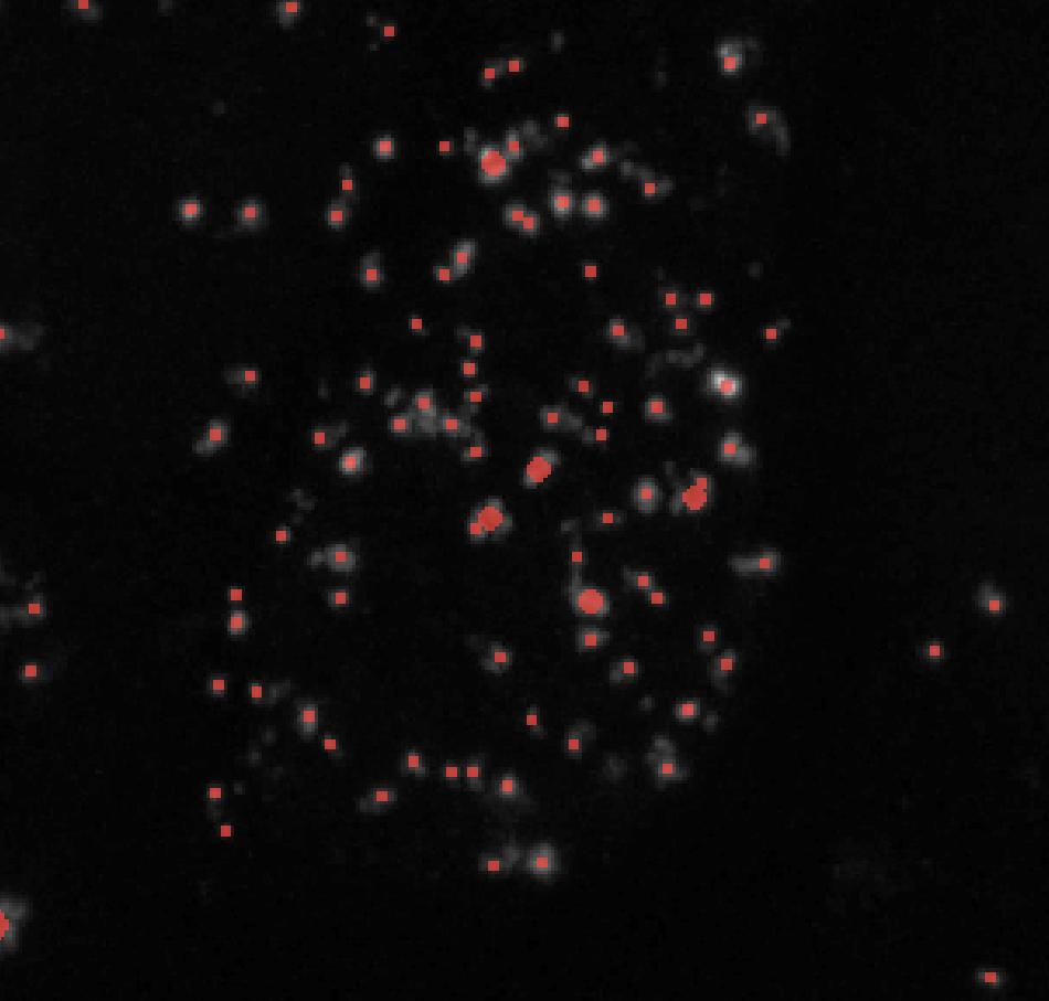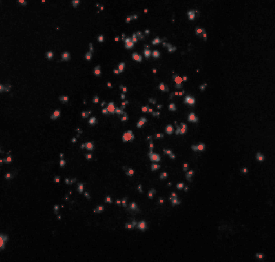Note: I find that setting the threshold to 1 and having min_sigma at around 1 - 3 works best for segmenting clustered puncta. This is especially useful for creating seed points for watershed segmentation.
